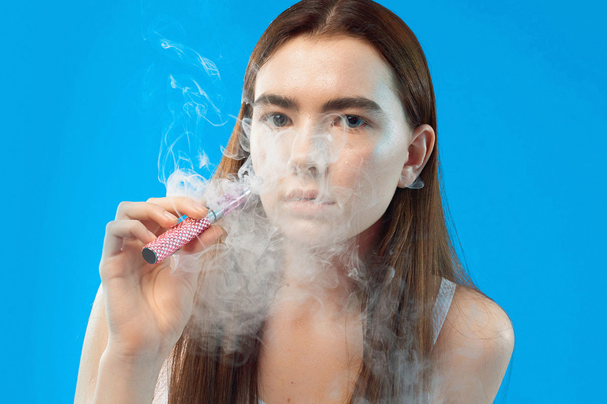 Молодая девушка с вейпомМолодой парень с вейпом